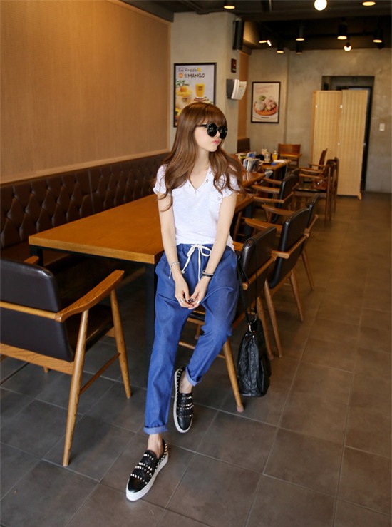 Quần skinny, quần short, quần legging là những item mà bạn cần phải loại bỏ. Bởi, nó sẽ tố điểm yếu sẵn có trên cơ thể bạn. Để che lấp phần chân cong, vòng kiềng, bạn nên "kết thân" với quần dáng suông, dáng đứng, quần jeans boyfriend, quần baggy. Thiết kế phần ống rộng, không ôm sát vừa thoải mái lại giúp bạn khắc phục phần cơ thể chưa hoàn hảo.