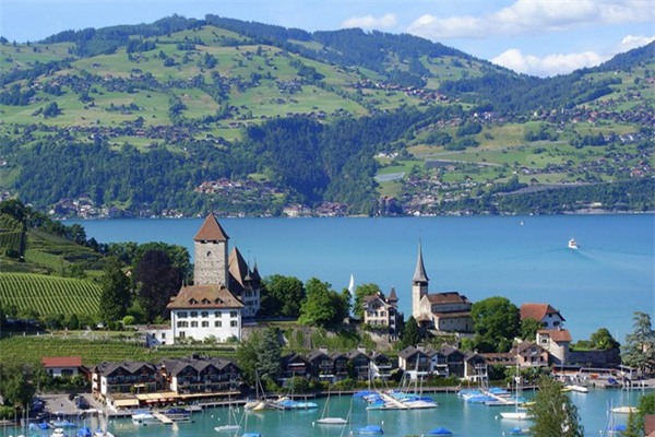 Interlaken, Thụy Sĩ: Khung cảnh hùng vĩ và nên thơ vùng Interlaken khiến bạn chỉ nhìn thôi cũng đã thấy tâm hồn trở nên bình yên. Wander With Laura nhận định Thụy Sĩ là một trong những quốc gia đẹp nhất thế giới. Ảnh:Prime-travel.