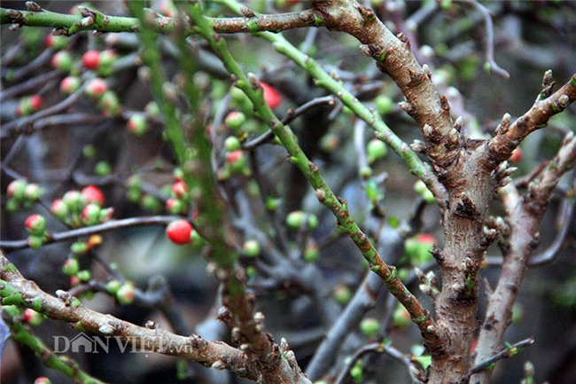 Trong khi tại các tỉnh thành miền Nam mai vàng bung nở đồng loạt thì tại miền Bắc, hoa mai có cánh màu đỏ vừa lạ lẫm vừa quen thuộc vẫn đang thu hút sự chú ý của nhiều người chơi hoa.