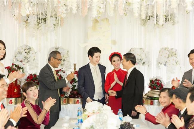 Buổi lễ diễn ra trong không gian riêng tư, chỉ có sự góp mặt của một số bạn bè thân thiết cùng hai bên gia đình nên những hình ảnh về ngày vui này vô cùng hiếm. Chỉ có một vài khoảnh khắc được ê-kíp Mai Hồ và những nghệ sĩ có mặt tại đây chia sẻ.