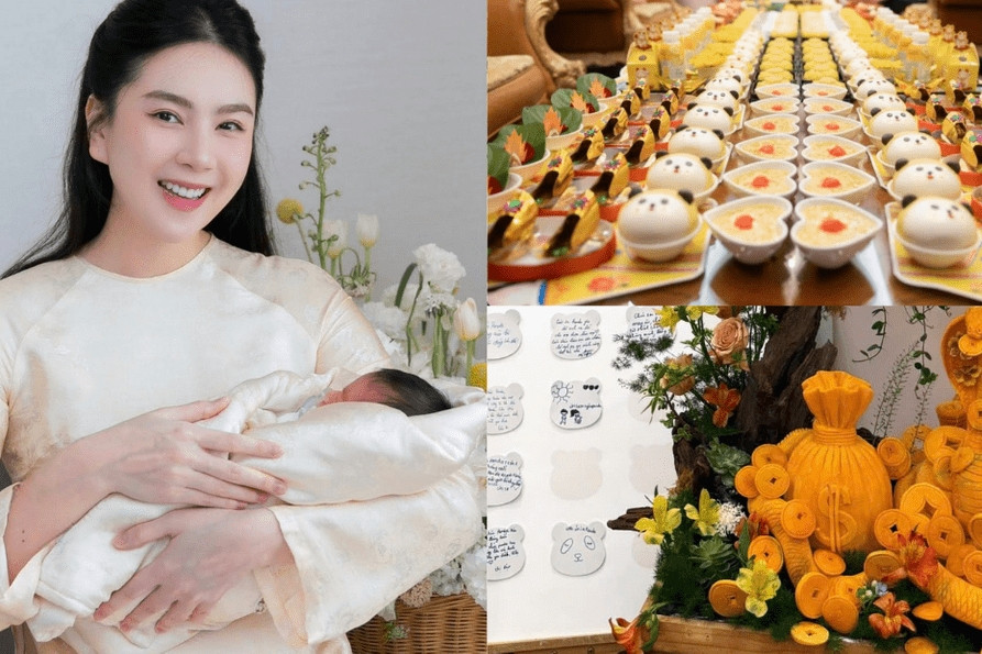Mới đây, người đẹp đã tổ chức tiệc đầy tháng cho con trai Panda. Từ hình ảnh cho thấy, không gian tiệc được trang trí hoành tráng với hoa tươi, bánh, nước,... Đặc biệt, chi tiết những chiếc bánh được in hình gấu Panda (tên thân mật ở nhà của con trai Mai Ngọc) cũng đủ thấy gia đình cô tinh tế đến mức độ nào.