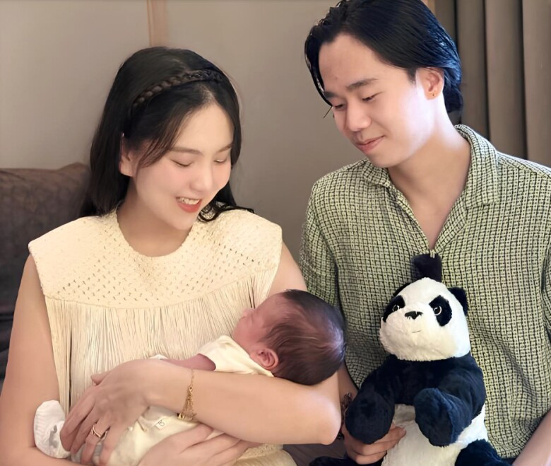 Cô còn chia sẻ hình ảnh hiếm hoi cận gương mặt của quý tử đầu lòng trên mạng xã hội. Nhóc tỳ sở hữu gương mặt bầu bĩnh cùng chiếc mũi cao thẳng tắp, được nhận xét thừa hưởng nét đẹp từ nữ MC nổi tiếng.