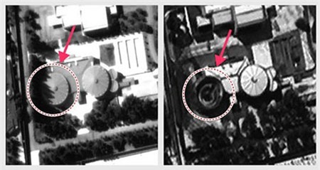 Các chuyên gia về hình ảnh vệ tinh đã so sánh sự khác nhau giữa hai tấm hình chụp: một tấm hình trên Google Earth trước đây cho thấy hình ảnh căn biệt thự còn nguyên vẹn và tấm hình thứ hai do vệ tinh Arirang 3 của Hàn Quốc chụp gần đây cho thấy mái của một tòa nhà trong khu biệt thự bị sập hoàn toàn.