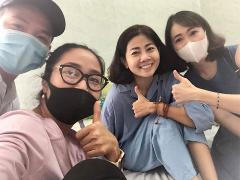 Từ sáng tới gần 12h trưa, nhiều nghệ sĩ, đồng nghiệp vào thăm Mai Phương. Trong vòng tay mọi người, cô vẫn cười rất tươi, trò chuyện về những kỷ niệm khi còn làm việc với nhau.