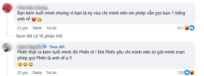 Dưới bài đăng, nhiều cư dân mạng còn để lại loạt bình luận trêu đùa gọi Mai Tài Phến là "anh rể": "Bạn kém tuổi mình nhưng vì bạn là người yêu của chị mình nên xin phép vẫn gọi bạn một tiếng anh rể"...