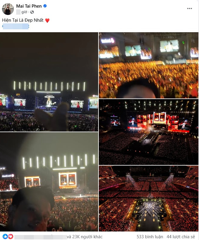 Mới đây, Mai Tài Phến xả loạt ảnh mới trên trang cá nhân hút sự chú ý. Theo đó, nam diễn viên đăng hình ngồi hàng ghế khán giả cổ vũ đêm concert của Mỹ Tâm.