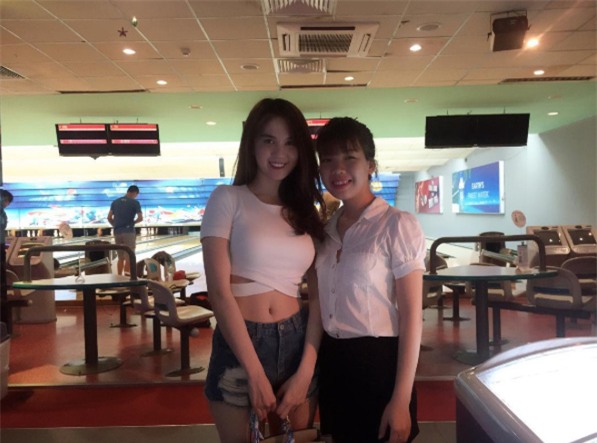 Hình ảnh Ngọc Trinh chụp ảnh cùng fan và khoe khéo vòng eo con kiến đã dập tắt tin đồn cô bị béo lên.