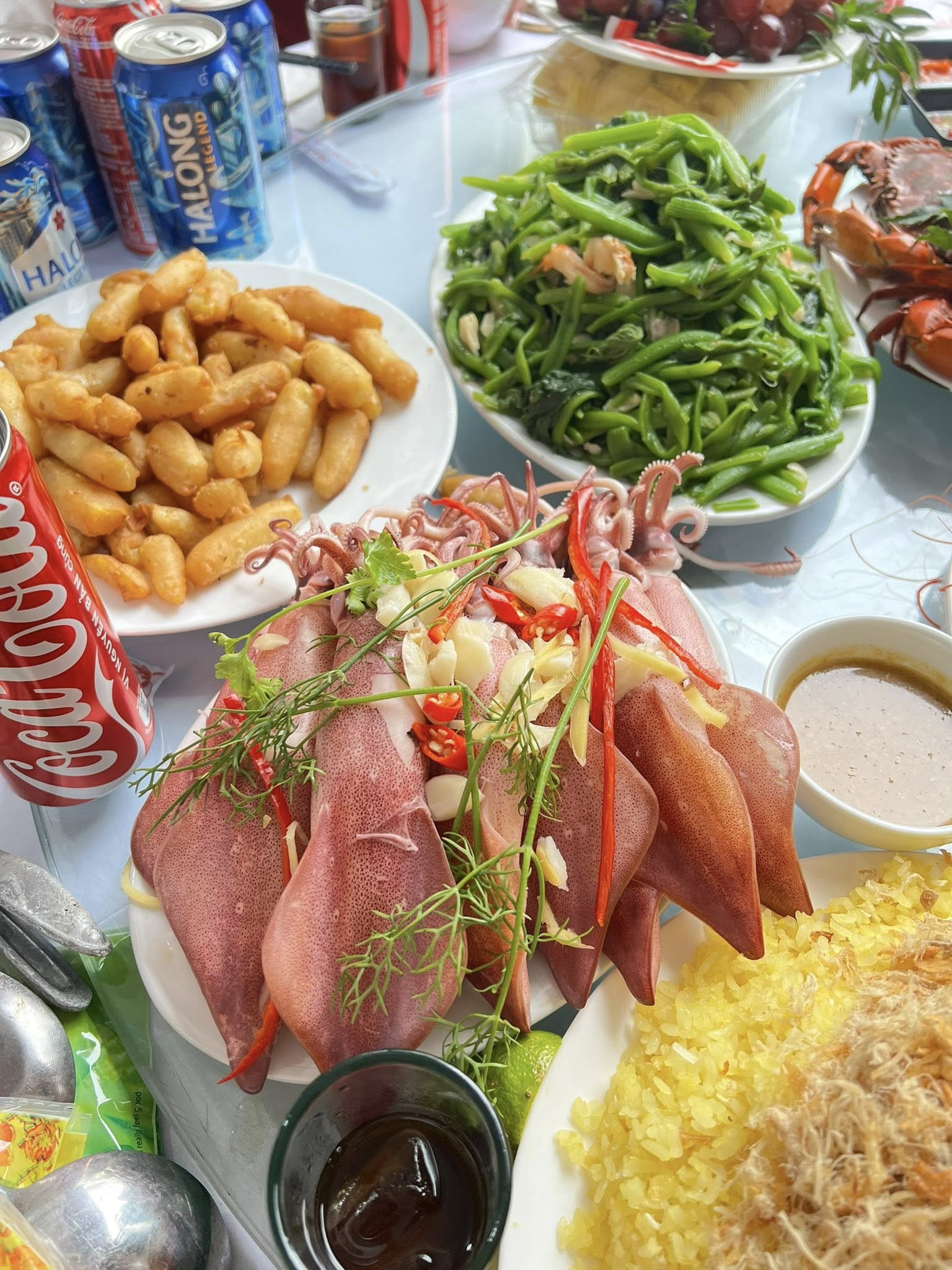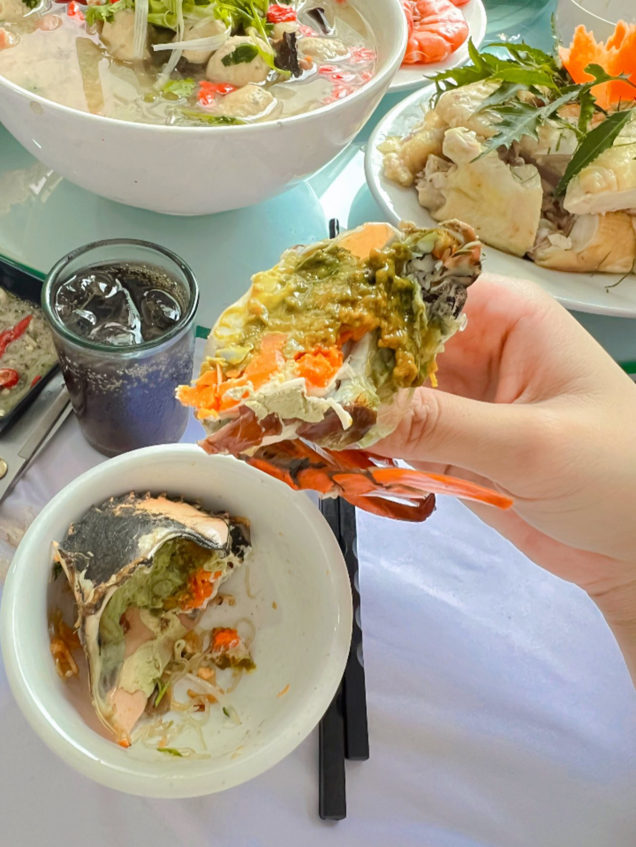 Trong đó, cô ấn tượng với món cua hấp nhiều gạch béo ngậy và mực hấp dày thịt, ăn có vị ngọt thơm tự nhiên.