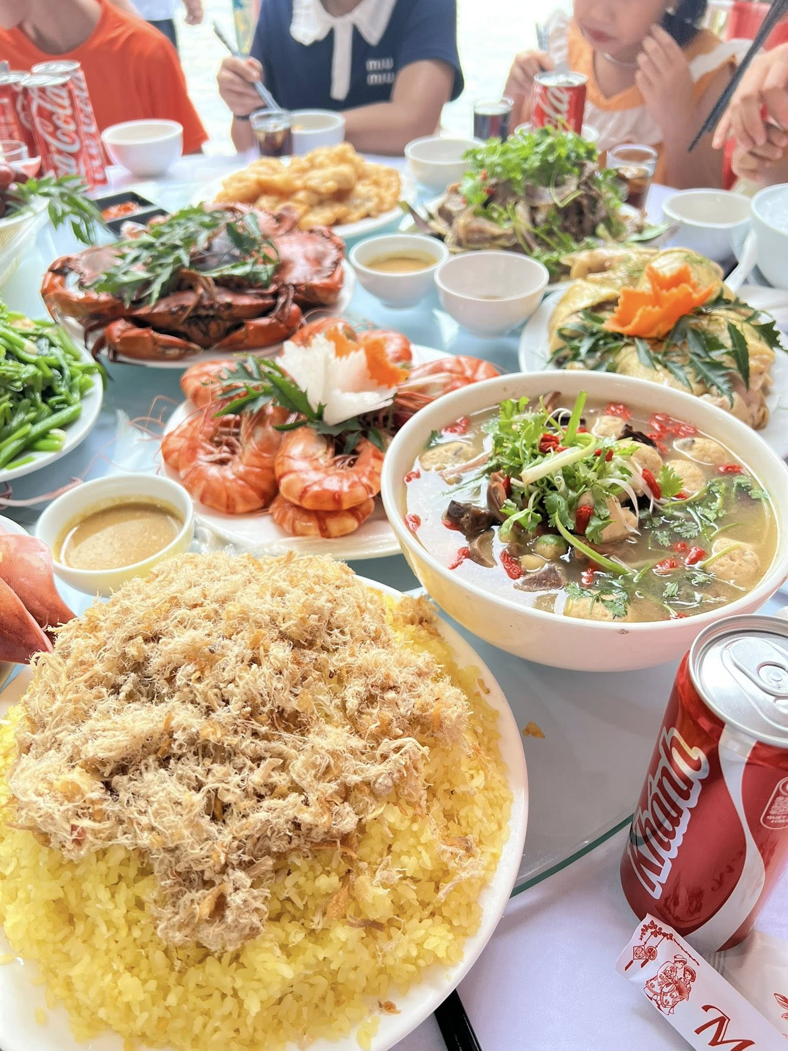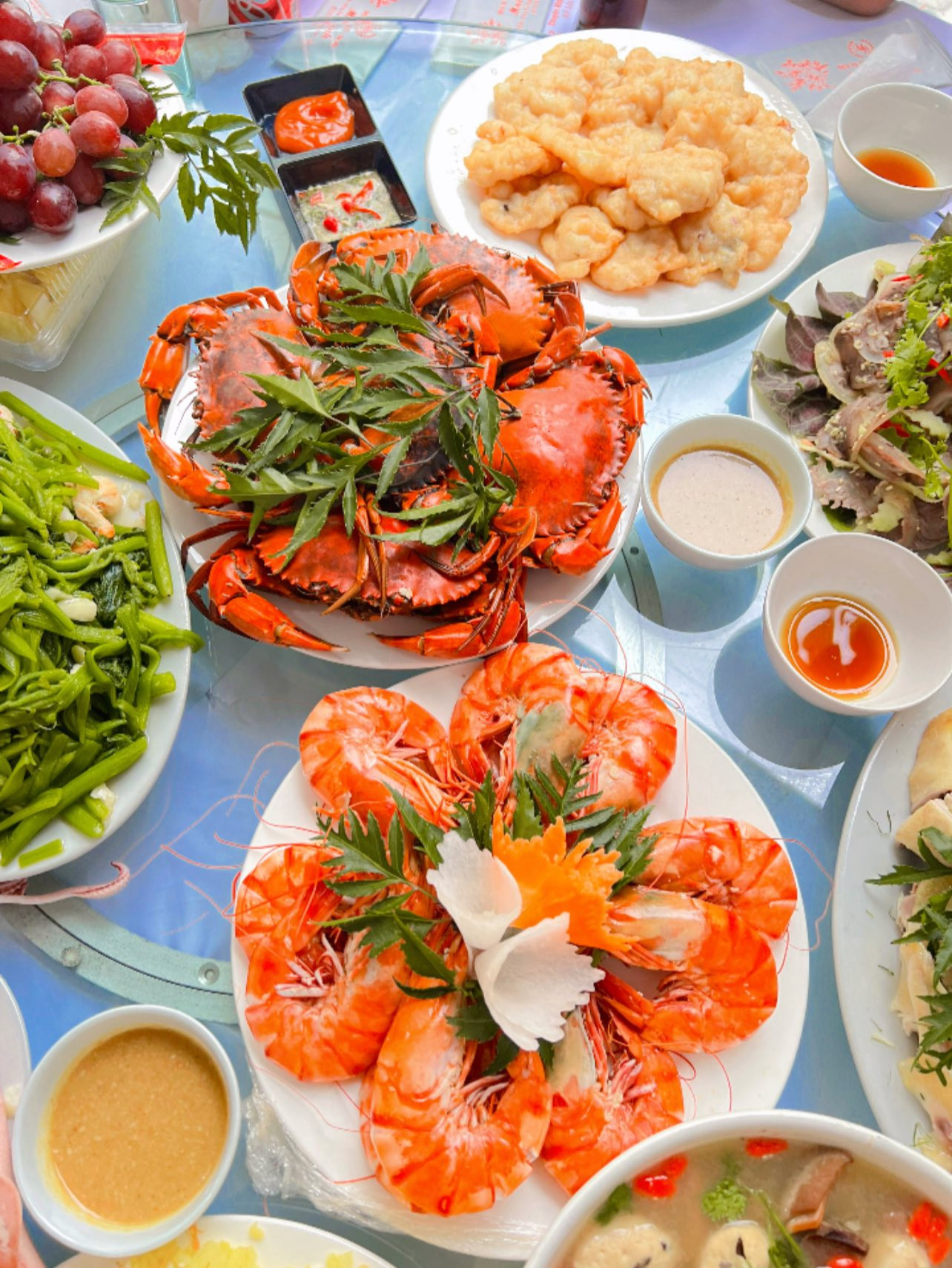 Phổ biến nhất là mâm 10 người, khoảng 12 món với giá 4-5 triệu đồng, gồm các món chính từ tôm, cua, mực hoặc sứa, sò thưng.