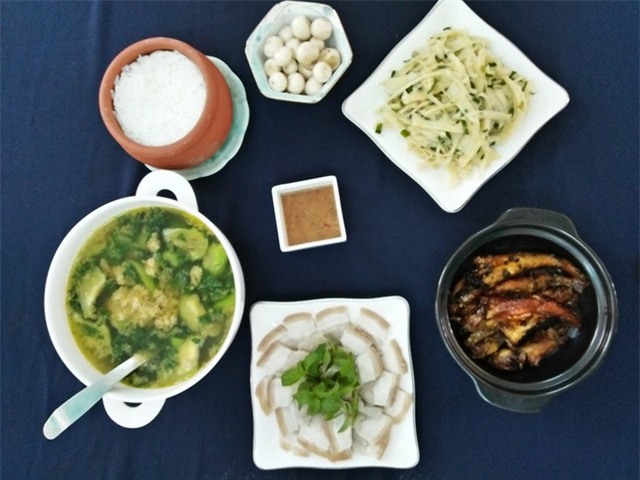 300 gam cua làm sạch bỏ vào máy xay sinh tố xay nhuyễn, lọc lấy nước cốt bỏ lên bếp đun cho vào nồi 1 chút muối. Rau đay, rau mùng tơi rửa sạch cắt ngắn khoảng 1cm, mướp gọi vỏ cắt xéo. Cho rau và mướp vào nồi nước cua trên nêm mắm, muối, bột ngọt vừa ăn, đun sôi bằng lửa nhỏ. Canh chín, tắt bếp rồi múc vào tô.