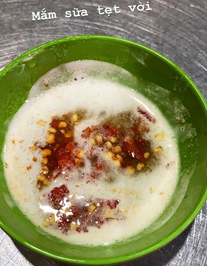 Hoa hậu Tiểu Vy chia sẻ hình ảnh loại nước chấm có phần kỳ lạ với 2 thành phần dường như chẳng liên quan: Mắm và Sữa!