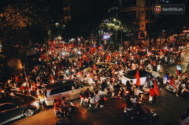 Tiếng còi kết thúc trận đấu vàng lên, dòng người với cờ hoa rực rỡ đã cùng nhau đổ ra đường hò reo, ăn mừng chiến thắng đến tận nửa đêm cũng không có dấu hiệu hạ nhiệt. Từ Bắc chí Nam, đâu đâu cũng đi bão!