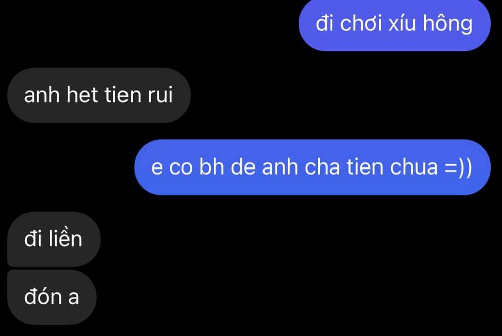 Xem qua loạt ảnh dưới đây, chúng ta có thể nhận ra mẫu câu "vòi tiền" của chàng "chạn vương": "Bank cho anh"! Nếu là vay tiền thì không nói, đằng này chàng ta còn tỏ vẻ nũng nịu với bạn gái kèm loạt đòi hỏi vô lý. Bắt người yêu cung phụng là vậy song anh ta lại đòi đến từng ngàn một khi lấy hộ đơn hàng của bạn gái. Hẳn là chị em xem xong sẽ đều phải lắc đầu ngao ngán.