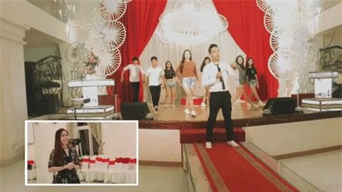 Sau những phút giây vui nhộn của đại gia đình, chàng trai xuống sân khấu dắt cô gái bước vào vòng trái tim lấp lánh ánh đèn được chuẩn bị trước. Anh bất ngờ quỳ xuống nắm chặt tay bạn gái, nói những lời yêu thương, ngọt ngào trước sự chứng kiến của mọi người.
