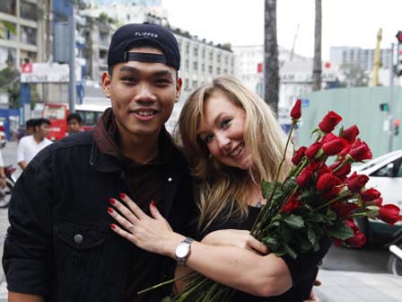 Mới đây, cư dân mạng liên tục chia sẻ clip một chàng trai người Việt nhảy flashmob cầu hôn với bạn gái Tây giữa trung tâm Sài Gòn. Theo tìm hiểu, mối tình chàng Việt - nàng Tây kéo dài 8 tháng. Cô gái tên là Rebbeca Am Lambton (29 tuổi) đến từ vương quốc Anh. Chàng trai 22 tuổi tên là Lê Khánh Luân (trú tại quận 10, TP.HCM). Hiện Luân đang làm việc tại một quán bar còn Rebbeca là giáo viên tiểu học của một trường quốc tế. Sau một thời gian tìm hiểu, chàng trai quyết định tổ chức màn nhảy flashmob với sự "hỗ trợ" của bạn bè để cầu hôn bạn gái.