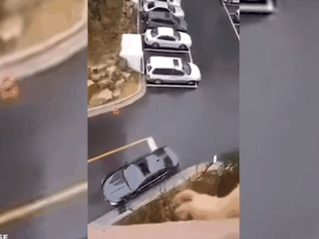 Và thật thần kỳ, miếng bánh rơi đúng vào chiếc cửa thông gió nhỏ và hẹp trên nóc xe của người chồng như đã được lập trình từ trước.