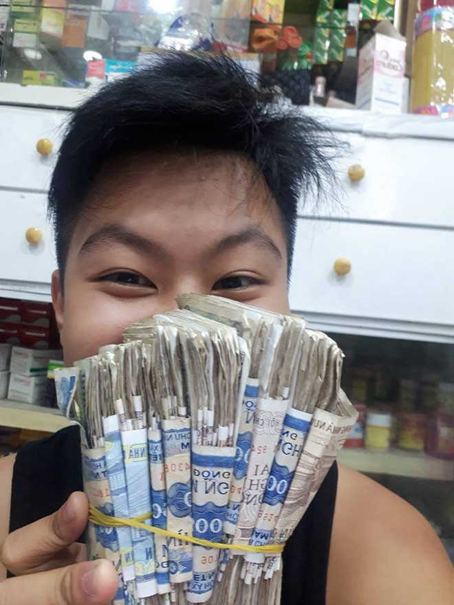 Chàng trai cùng cọc tiền lẻ đang gây bão trên MXH.