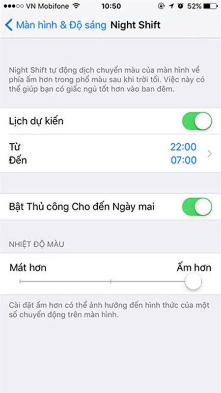 Apple mô tả tính năng này giúp cho người dùng dễ ngủ hơn nếu như sử dụng smartphone/tablet vào đêm khuya. Đây cũng là tính năng đã từng có trên máy tính hay hệ điều hành Android, nhưng việc Apple tích hợp thẳng Night Shift vào iOS sẽ khiến nó phổ biến hơn. Vậy liệu màn hình chuyển vàng có thực sự giúp ta dễ ngủ hơn?