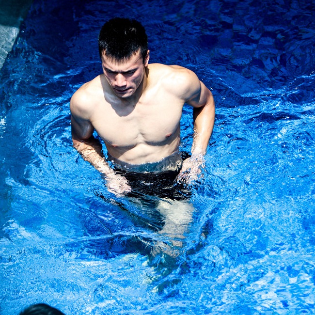 Ngoài tập luyện chuyên môn, anh còn thường xuyên đi bơi, vận động thể thao để có thể lực tốt, dáng vóc đẹp mắt.