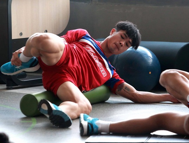 Trong bài tập này, các tuyển thủ Việt Nam để lộ thân hình vô cùng vạm vỡ, trong đó có thủ môn Bùi Tiến Dũng.