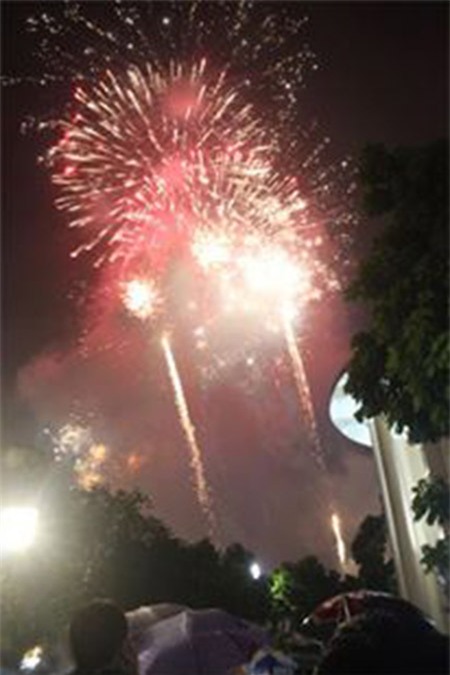 Khoảng 20h tối 2/9, toàn bộ các tuyến đường dẫn về khu vực trung tâm TPHCM chật cứng người và xe. Đúng 21h, màn pháo hoa rực rỡ khoe sắc trên bầu trời phía quận 2. Mỗi đợt pháo hoa được bắn lên là những tràng pháo tay vang lên tán thưởng không ngớt. Nhiều người dân tranh thủ dùng điện thoại ghi lại khoảnh khắc tuyệt đẹp.