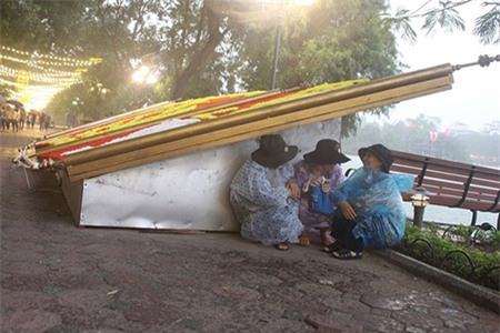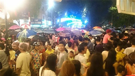 Trước đó, nhiều người dân từ khắp các tỉnh thành như Bắc Ninh, Vĩnh Phúc, Nam Định… sáng sớm nay đã đổ về Thủ đô xem diễu binh, quyết ở lại cả tối nay để xem bắn pháo hoa chào mừng Quốc khánh. Đã vượt đường xa xôi về Thủ đô nên cơn mưa lớn chiều nay không thể làm giảm khí thế của người dân.