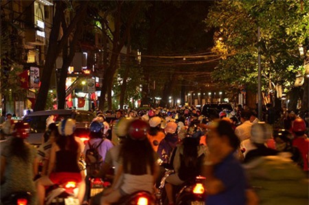 Người dân ùn ùn kéo về trung tâm để xem pháo hoa khiến nhiều tuyến đường bị kẹt xe kéo dài