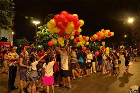 Bóng bay được một nhóm bạn trẻ phát cho người dân