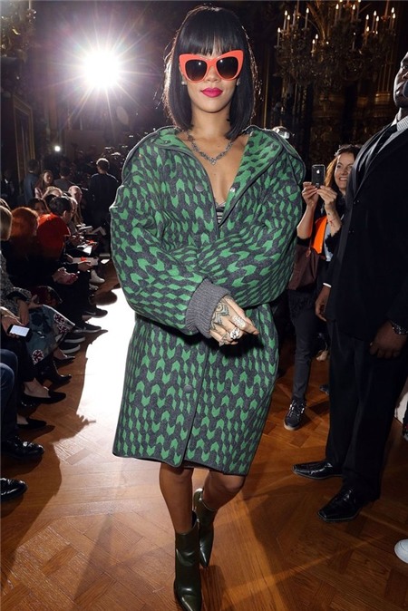 Nữ ca sỹ xứ Barbados đặc biệt yêu thích những thiết kế áo khoác với phần cổ xẻ sâu và thường táo bạo diện riêng chúng để khoe lợi thế hình thể "chết người" của mình.