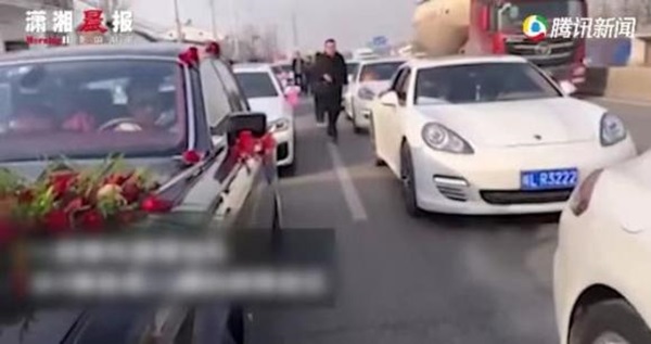 Cụ thể, gia đình chú rể chuẩn bị 6 chiếc xe cưới về nhà gái để rước dâu. Trên đường đón về, đoàn xe phải đi qua cầu. Tuy nhiên, khi xuống cao tốc, đoàn xe "rồng rắn" thêm 16 chiếc xe, 3 cô dâu và hơn 10 phù dâu.