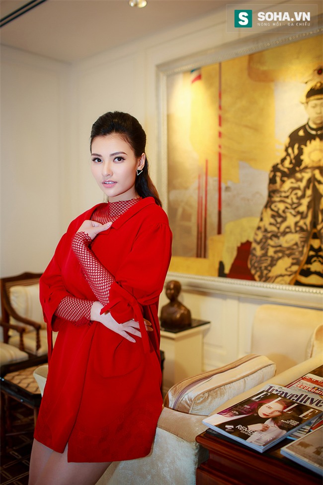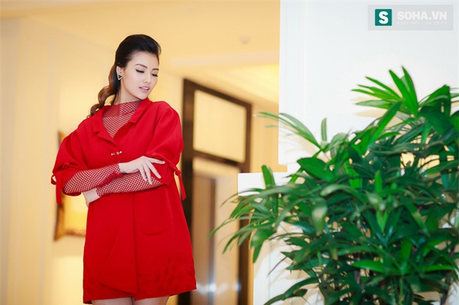 Hồng Quế xuất hiện trong bộ trang phục màu đỏ trong bộ sưu tập của nhà thiết kế thời trang Xuân Lê.