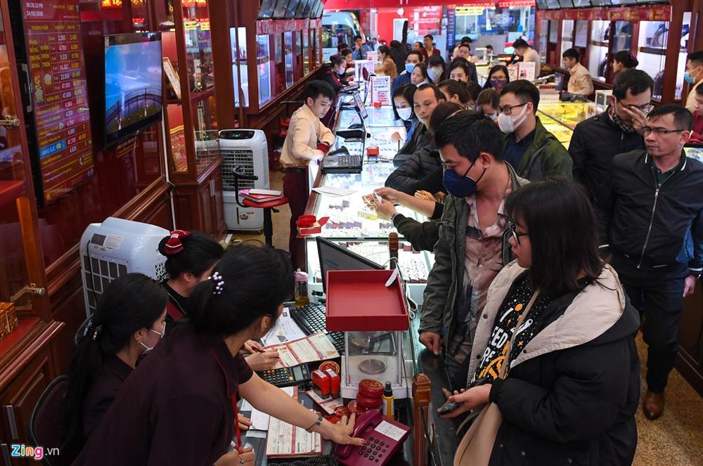 Cuối giờ chiều ngày 24/2, hàng trăm người đổ đến một cửa hàng trên phố Trần Nhân Tông (Hà Nội) để mua bán vàng. Do lượng khách quá đông, mỗi người phải xếp hàng khoảng 30 phút mới có thể giao dịch.