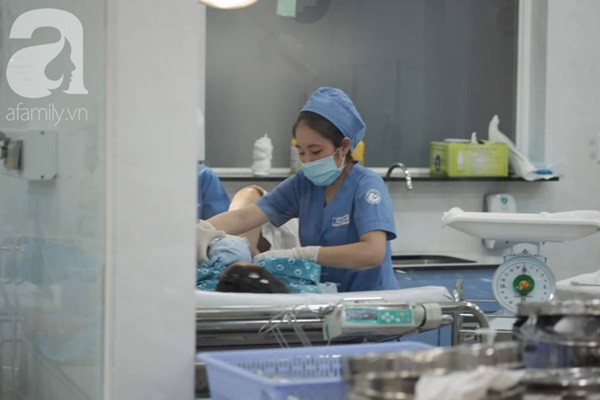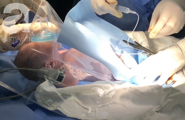 Khi mọi thứ đã sẵn sàng, lập tức kíp sản bắt đầu rạch da. Mẹ bé được gây tê nên lắng nghe được tiếng con chào đời, 2 bé trai nhanh chóng được chuyển qua phòng bên cạnh khi vừa cất tiếng khóc.