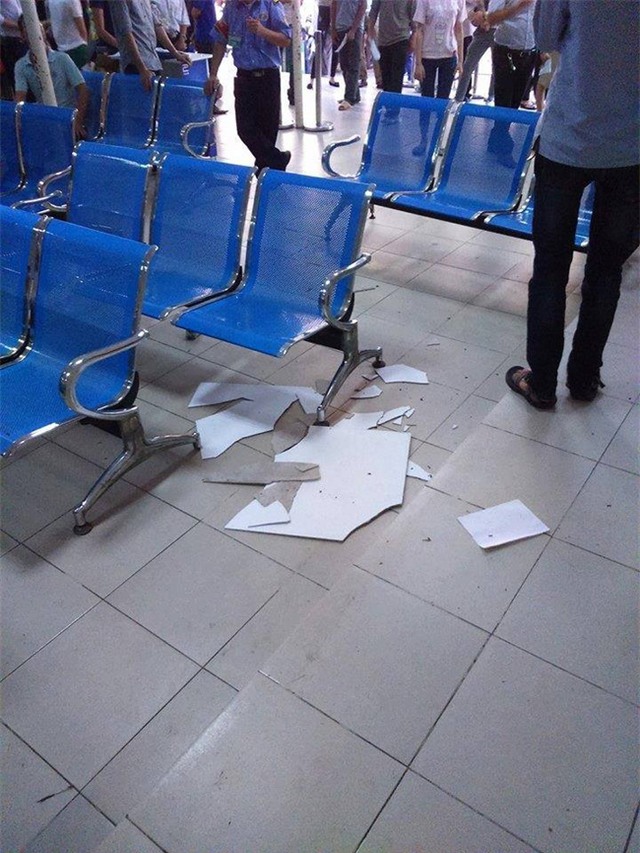 Trao đổi với chúng tôi, ông Vũ Thanh Quang, Giám đốc Bệnh viện Tai mũi họng Trung ương xác nhận có vụ việc. Ông Quang cho biết, trong lúc người bệnh chờ khám, một tấm kim loại trên trần nhà bất ngờ rơi xuống khiến một em bé bị thương nhẹ.