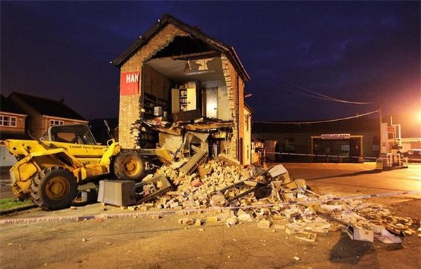 Sáng sớm ngày 29/9, tại ngôi làng Whittlesey ở thành phố Peterborough, Anh đã xảy ra một vụ phá hoại vô cùng "ly kỳ" khi một nhóm cướp huy động đến 4 chiếc xe gồm: 1 xe ủi, 1 máy xúc và 2 chiếc xe tải tới trạm xăng để cướp máy rút tiền ATM ở bên trong. Thế nhưng đến cuối cùng, chỉ có bức tường ở trạm xăng đổ nát cùng tòa nhà 2 tầng tan hoang, còn cây ATM thì vẫn nguyên ở đó và lũ cướp trắng tay ra về.