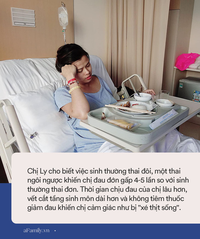 Chị Ly cảm nhận việc sinh con lần này rất đau, đau gấp 4-5 lần so với khi chị sinh bé đầu tiên. Thời gian đau lâu hơn và vết rạch tầng sinh môn cũng dài hơn, lại không tiêm giảm đau nên cảm giác đúng như bị "xé thịt sống".