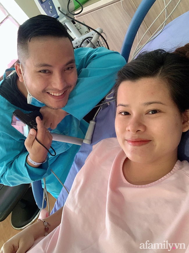 Ông xã luôn đồng hành và khích lệ chị Ly trong quá trình sinh con.