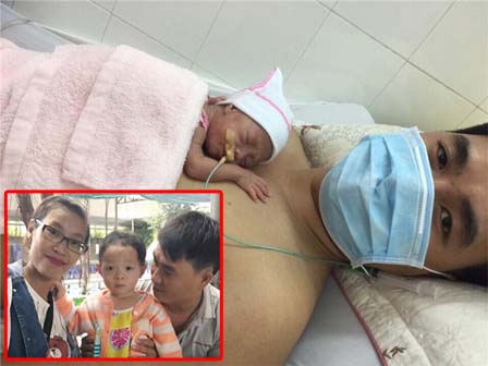 31 ngày bé nằm trong lồng kính, ngày nào anh cũng chạy lên nhìn con. Thậm chí, anh còn thay chị ấp kangaroo, da tiếp da cho con mỗi ngày.“Sức khỏe mình yếu quá, không thể ấp được kangaroo cho con nên chồng làm hết. Khoảng thời gian con nằm lồng kính nhiều lần vợ chồng mình phải thót tim.