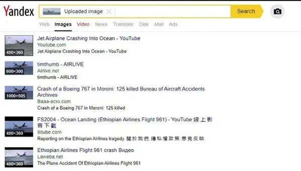 Theo kết quả tìm kiếm hình ảnh trên công cụ tìm kiếm Yandex, có một số video tương tự đã từng được đăng tải lên YouTube. Một trong số chúng được tải lên bởi tài khoản YouTube Channel P145 vào ngày 20 tháng 1 năm 2009. Đoạn video dài 45 giây có tiêu đề "Chuyến bay 961 của Hãng hàng không Ethiopian".