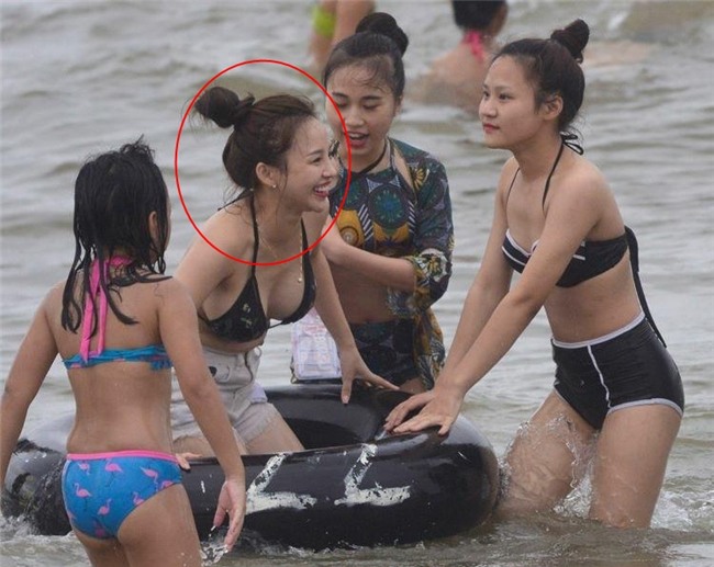 khi đang vui đùa tắm biển cùng hội bạn. Sở hữu ngoại hình cân đối, vóc