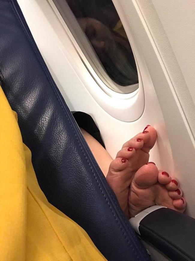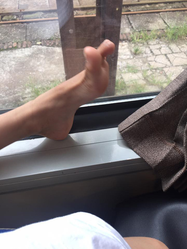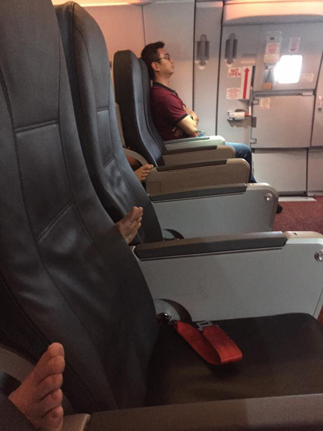 Thế mà hành khách còn bắt gặp đôi chân dí thẳng trước mặt thế này thì thật khó chấp nhận được.