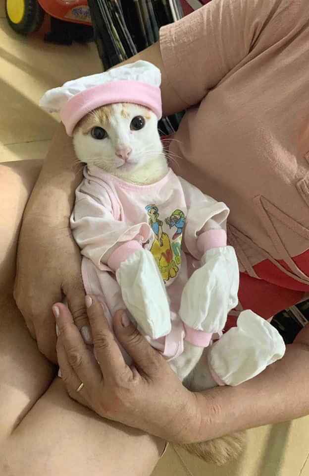 Thì ra đó lại là một "hoàng thượng" được ăn vận giống như một em bé sơ sinh. Được bà ngoại bế ẵm ầu ơ, "hoàng thượng" dễ thương này thiu thiu ngủ ngoan ngoãn. Đưa một chú mèo về chống chế lời của mẹ, cô gái không ngờ mẹ mình lại cưng nó đến vậy.