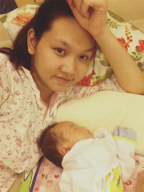 Hồng Nhung khi vừa mới sinh con với khuôn mặt vẫn còn tròn trịa.