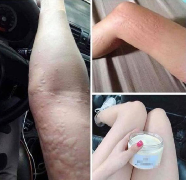 "Em gái mua tặng mình một lọ kem làm trắng da từ chỗ hot girl Thúy Vi. Bôi được một lần thấy nóng ran khắp người. Cứ nghĩ kem phát huy tác dụng nên mình bôi tiếp. Nhưng tới lần thứ 2 thì da mần lên nhìn đáng sợ quá...", tài khoản này chia sẻ thông tin.