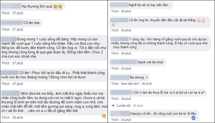 Rất nhiều bình luận động viên gửi đến 2 bố con anh tài xế.