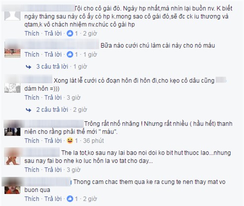 Một tài khoản khác có tên M.M.Định chia sẻ: "Ý chú rể là: Thà không có vợ còn hơn không được hút thuốc lào"