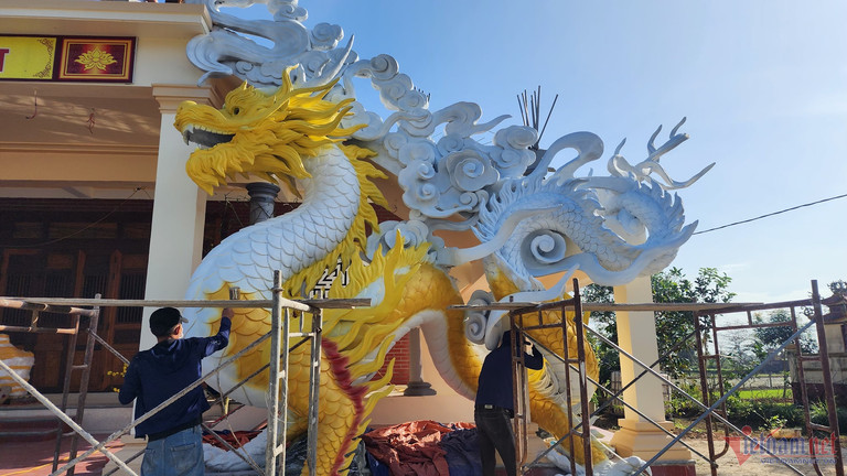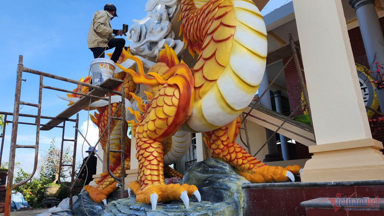 Tối 18/1, nghệ nhân Đinh Văn Tâm (SN 1991, trú tại xã Triệu Độ, huyện Triệu Phong, Quảng Trị) xác nhận, cặp tượng linh vật rồng do anh làm ở chùa Vân An (phường Đông Lễ, TP. Đông Hà) đã hoàn thiện.