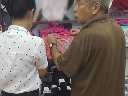 Nhận được sự tươi cười đồng ý của nhân viên cửa hàng, ông chồng này mới vào và thú thật: "Tôi mua đồ lót cho "người yêu". Bà ấy mặc size to lắm".