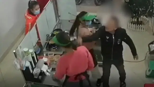 Thế nhưng người đàn ông này dường như cảm thấy việc hát karaoke ầm ĩ của mình chẳng có gì sai nên đã ngay lập tức phản ứng với lời nhắc nhở của cô gái này bằng cách xông thẳng vào cửa hàng để tỏ thái độ hung hãn, côn đồ.