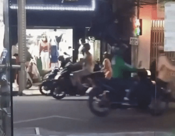Không nhún nhường, cô gái lập tức tháo mũ bảo hiểm rồi xông vào đập mạnh nhiều cái vào nam thanh niên, khi anh này phóng xe bỏ đi, cô vẫn chạy theo để đập mũ vào người. Tức giận, nam thanh niên đã dừng xe và đuổi theo cô gái, nhặt hòn đá dưới đường để dọa ném tuy nhiên sau đó lại bỏ xuống.